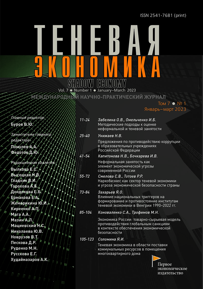 The specifics of the economic course of the Hungarian government in the 1990s and early 2020s, taking into account the disapproval of a number of vectors of the policy of the European Union, are analyzed. The analysis of the specifics of shadow economy institutions in the state under the influence of the USA and the EU is given. For the first time, the role of national triggers is shown. National triggers are considered as the basis of the behavior of the society titular majority. They are also a basis for economic development and can be considered as the form of an object of manipulation by foreign countries in order to achieve actual political results. The errors of the collective West\'s cessation of national triggers in the case of Budapest within the framework of Hungary\'s membership in the EU and NATO have been pointed out. The author explains why the country is pursuing an independent policy, and Brussels and Washington have so few resources to put pressure on Budapest in the context of promoting the shadow economy and their interests in this vector of Eastern Europe.