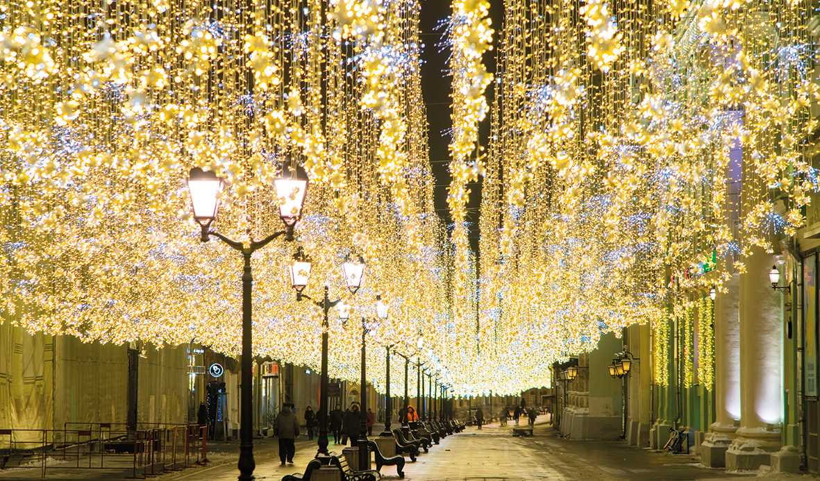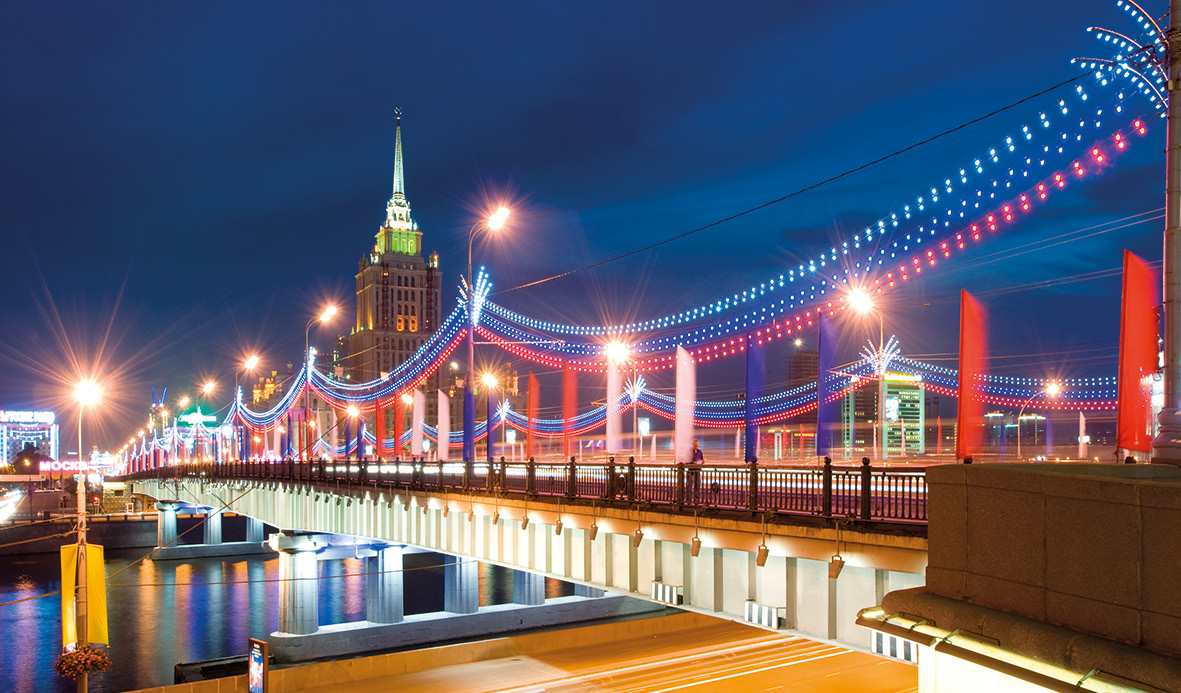 In mid-1990s there began purposeful efforts aimed at improving the city image of night-time Moscow. The city authorities were trying to give the city’s streets, squares, bridges the kind of appearance that would be similar to the impression the city produced on its citizens and visitors during the day-time. The first program of improving the city lighting was kicked off in 1994, when for the first time ever many city’s facades received artistic landscape design. In 2008 a yearslong program was launched to create a uniform light-and-color environment in the city, where all kinds of outside lighting would be in harmonically in concert. In 2013 a concept of lighting design was adopted in Moscow in order to provide emotionally comfortable atmosphere in the city during the autumn and winter times, lowering the negative effect of daylight deficiency on citizens. In our approaches to decorative and festive lighting of the Capital the focus has been shifted from monumental architectural forms towards the citizen, his interests and needs. Today the quality and beauty of Moscow’s lighting design are renowned the world over, while keeping a balanced esthetic image of the urban environment still remains one of the high-order tasks for the Russian Capital.