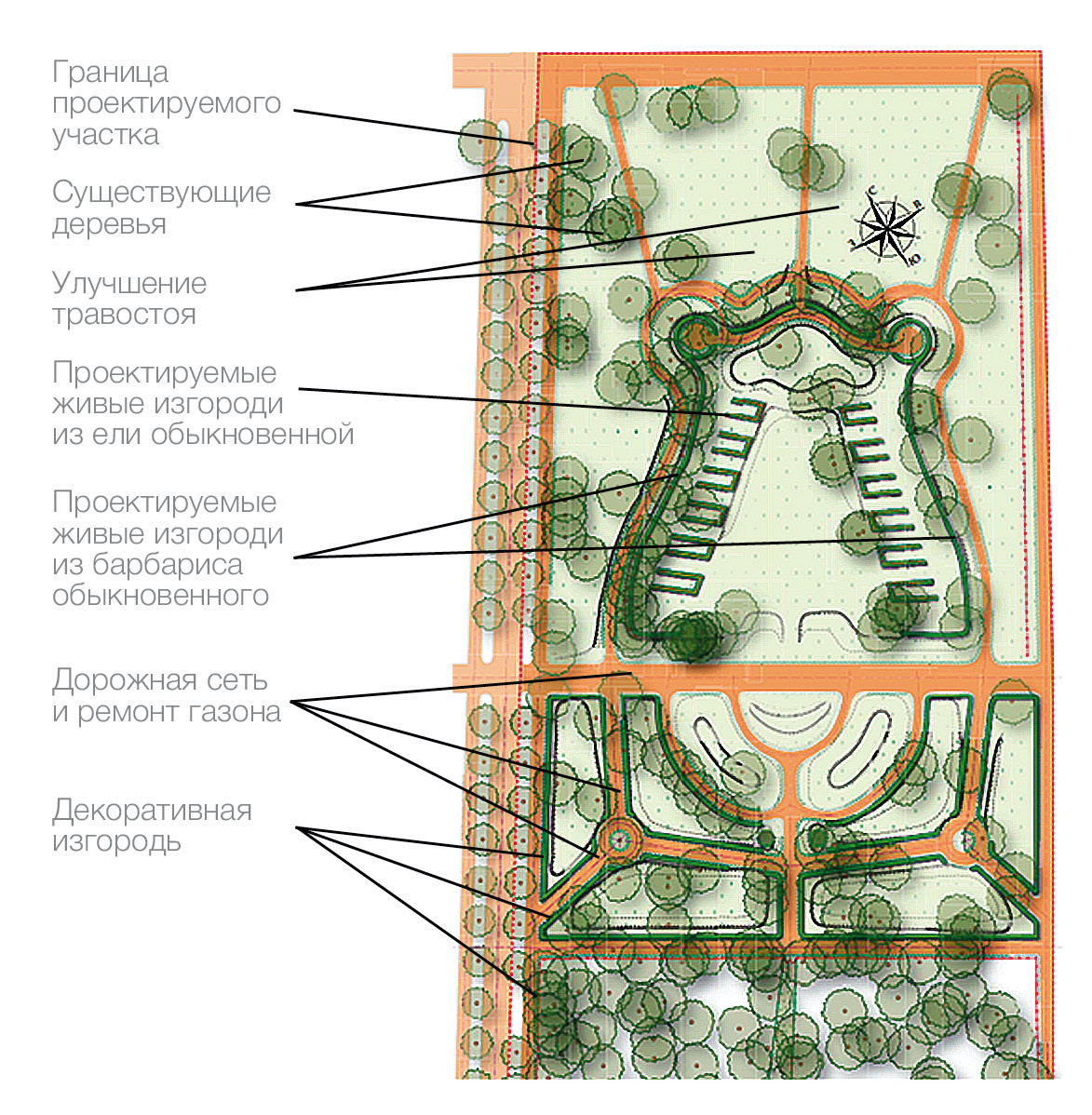 В результате долгих консультаций в профессиональном сообществе было принято решение о максимальном сохранении существующих элементов микрорельефа, старовозрастных деревьев и восстановлении планировки Воздушного театра.