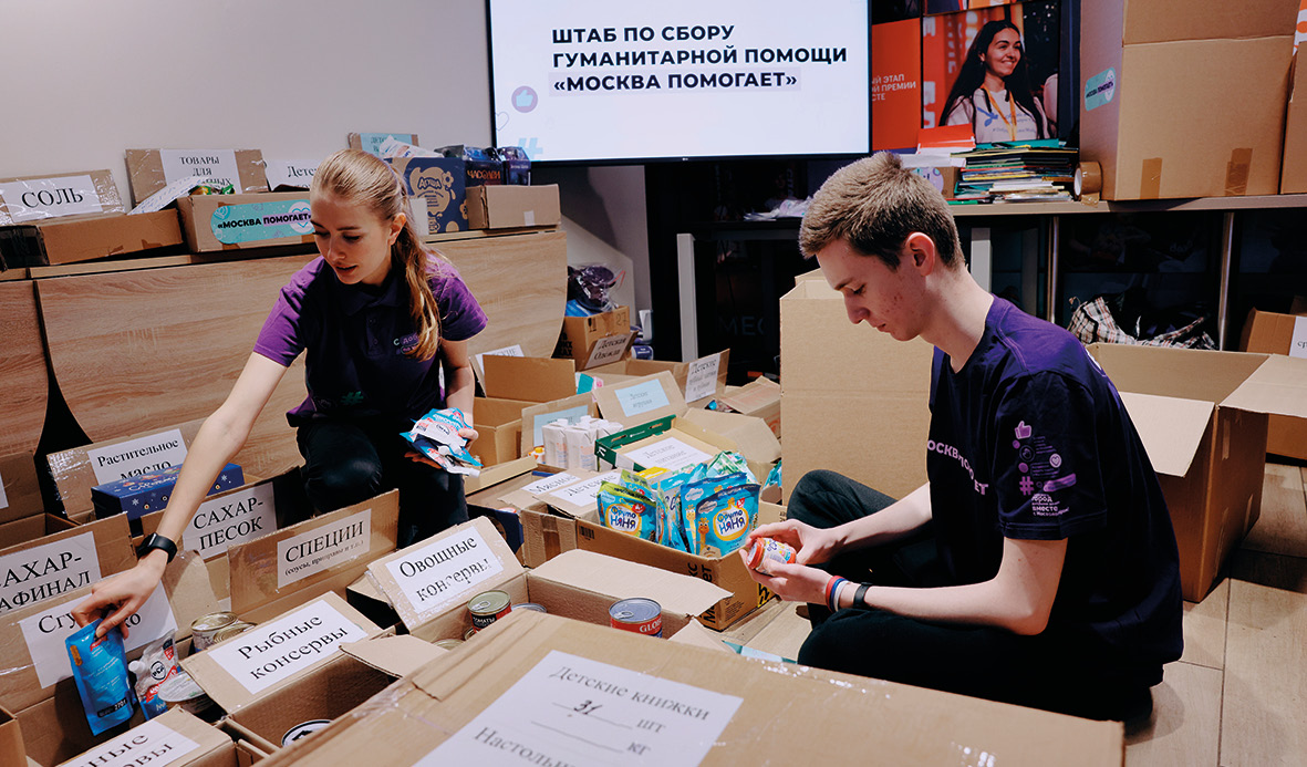 Сбор гуманитарной помощи волонтерами Москвы (фото предоставлено ресурсным центром «Мосволонтер», 2024 г.)
