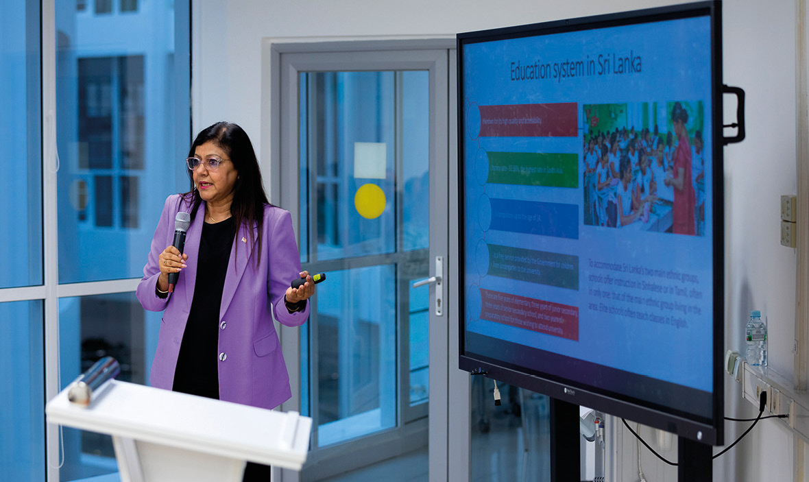 В рамках обучения слушатели приняли участие в дискуссии с Чрезвычайным и Полномочным Послом Демократической Социалистической Республики Шри-Ланка в Российской Федерации госпожой Джанитой А. Лиянаге на тему современных трендов в образовании на примере Шри-Ланки. На встрече обсудили опыт трансформации системы образования островного государства и тренды образования будущего [5, c. 51–52].