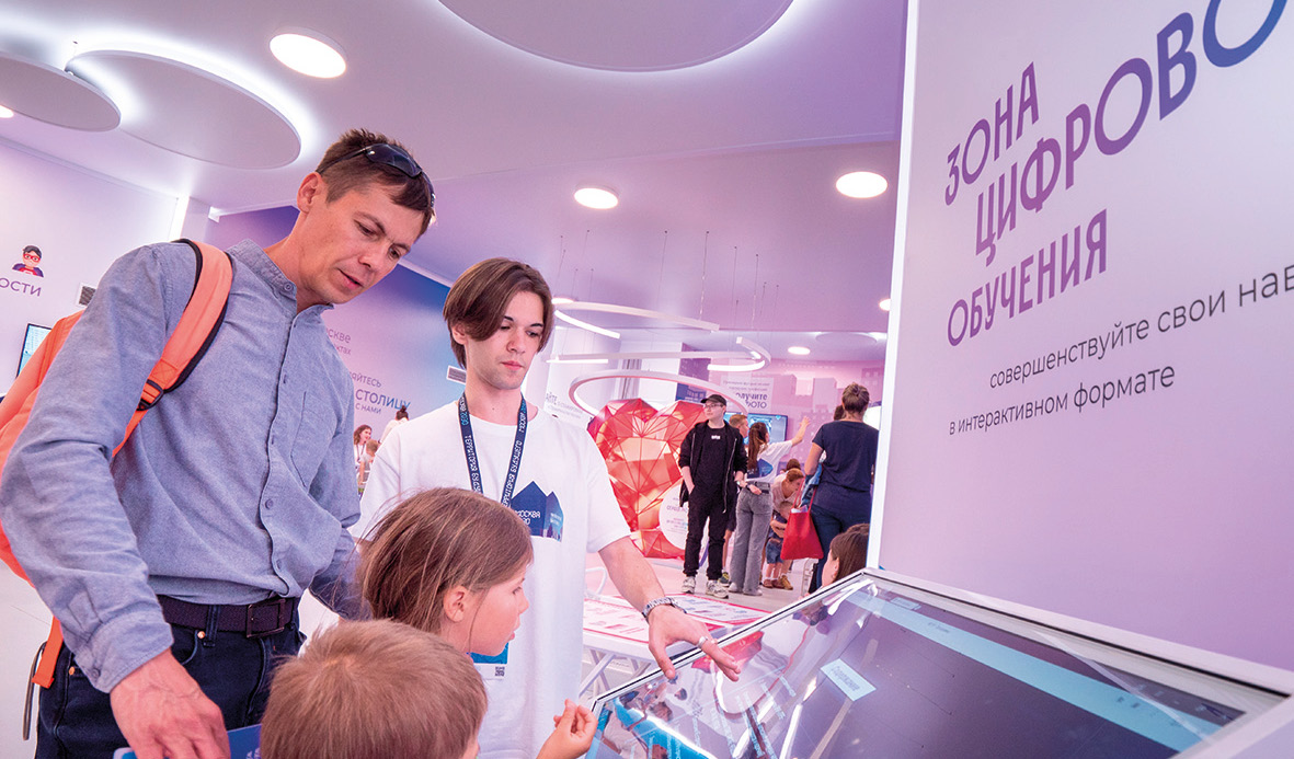 Гости павильона Управления кадровых сервисов в Парке Горького выбирают профессии будущего (фото Т. Лебедева, 2024 г.)