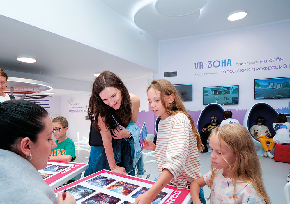 Особое внимание гостей привлекала VR-зона, где с помощью специального тренажера можно было примерить на себя одну из четырех городских профессий: контролер паркинга, инспектор по благоустройству, директор школы и ведущий церемонии бракосочетания. VR-зона стала особым центром притяжения для посетителей – многие хотели увидеть городскую работу изнутри и получить уникальный профессиональный опыт.
