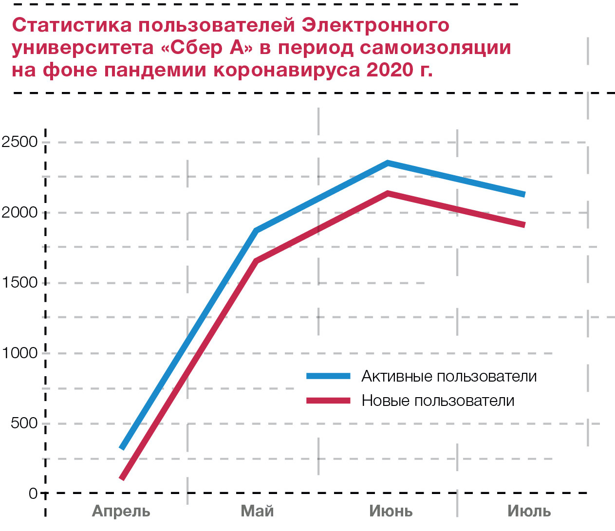 Статистика пользователей Электронного университета «Сбер А» в период самоизоляции на фоне пандемии коронавируса 2020 г.