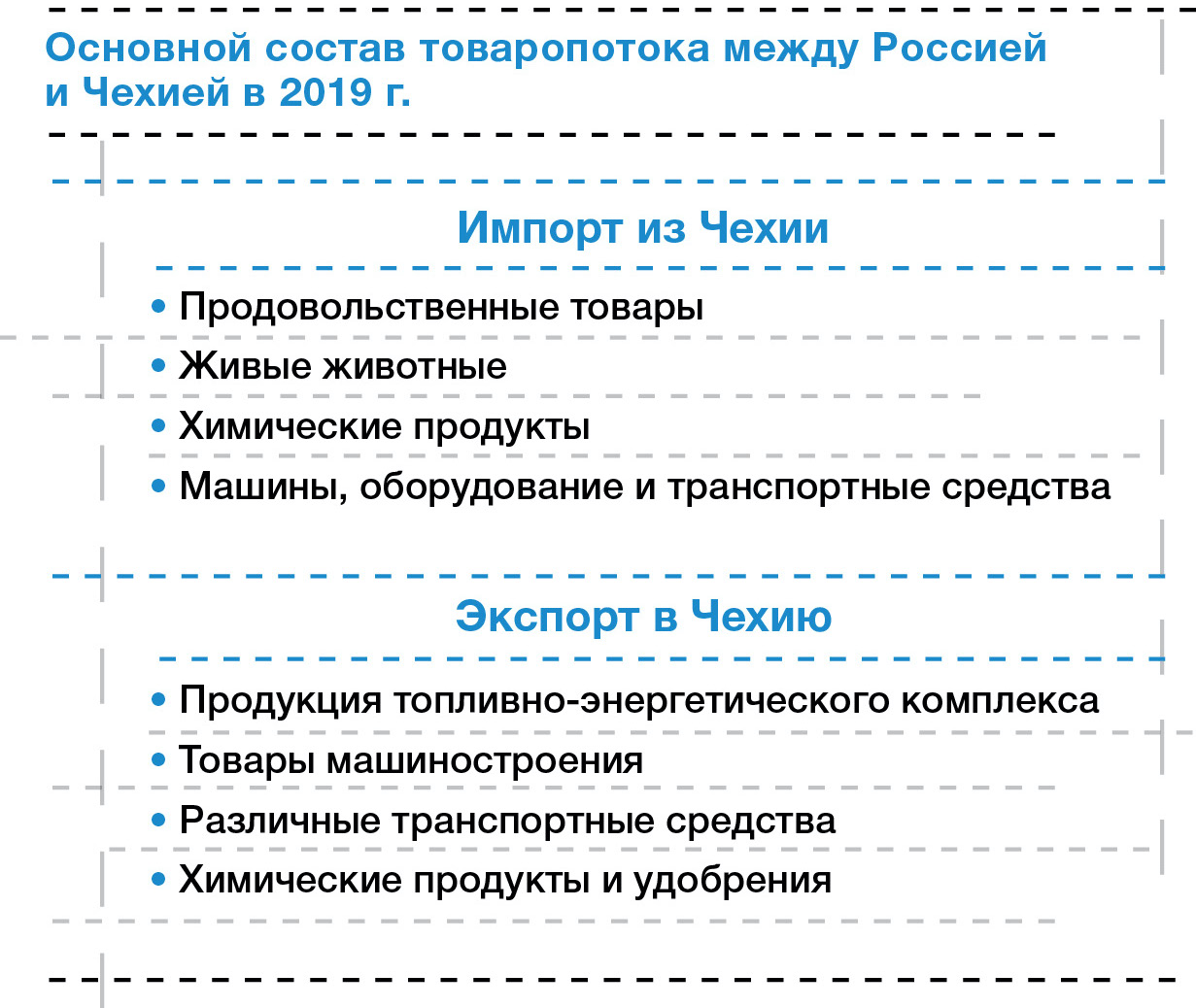 Основной состав товаропотока между Россией и Чехией в 2019 г.