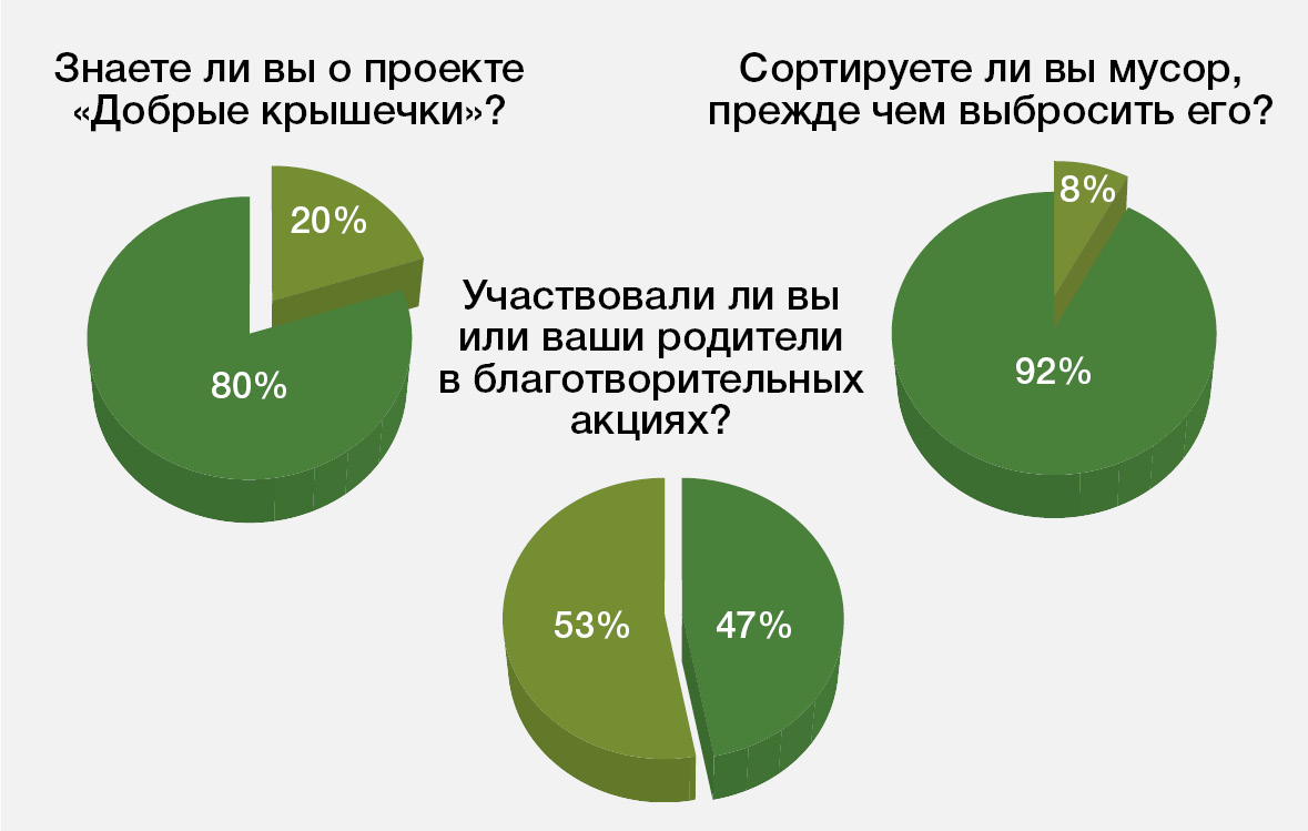Рис. 2. Результаты социологического опроса, проведенного Д. Алимовой для своего исследования «Большие возможности маленьких крышечек» (фрагмент презентации)