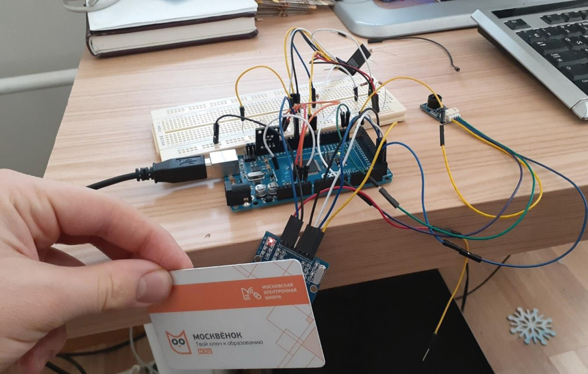 Рис. 3. Тестирование макета датчика температуры (сканирование карты при прохождении турникета) – из конкурсной работы И. Саковского