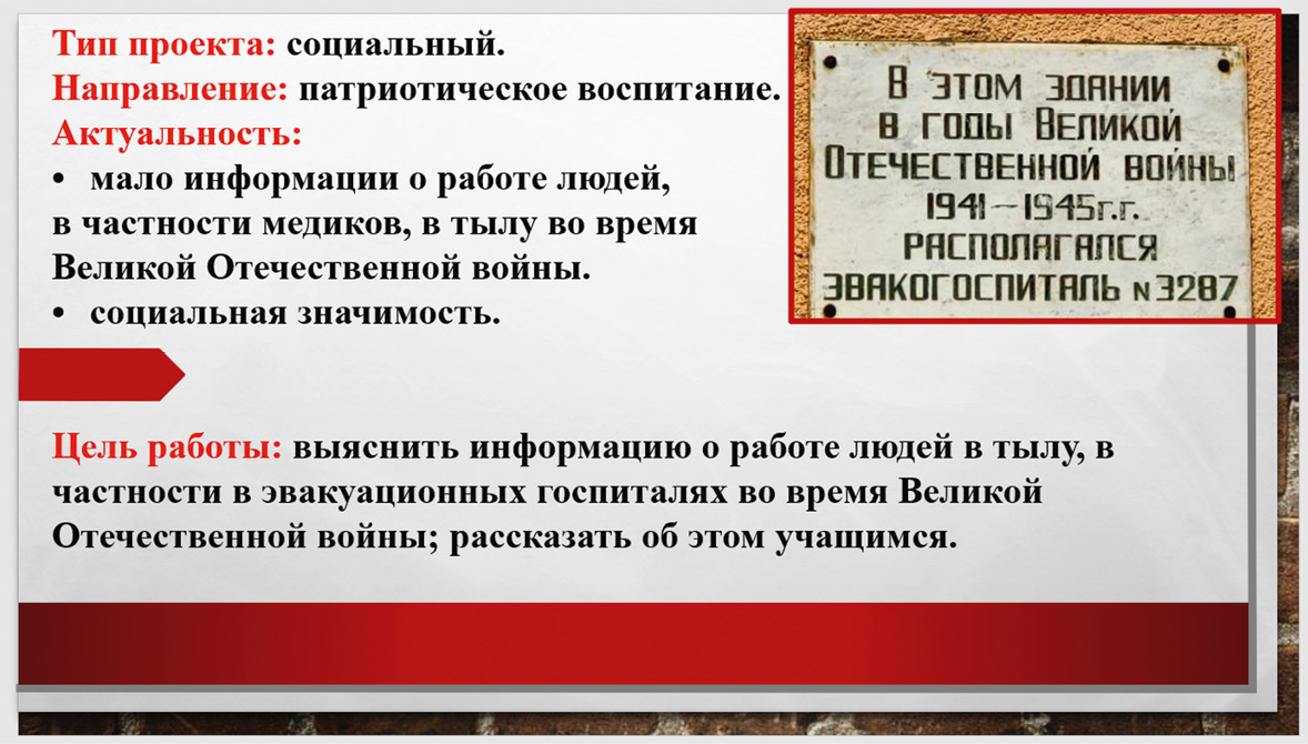 Рис. 4. Слайд из презентации проекта И. Зинченко «Работа врачей и медицинского персонала в период Великой Отечественной войны. Эвакуационные госпитали»