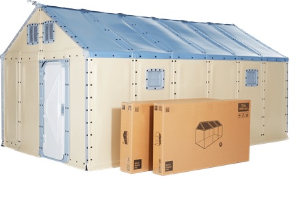 В 2015 г. IKEA Foundation, дочерняя компания мирового шведского бренда IKEA, разработала и реализовала концепцию временного жилья для лагерей беженцев. Площадь каждого из сооружений составляет 17,5 м2. На сборку сооружения уходит не более четырёх часов. Данный объект получил название Better Shelter («Лучшее укрытие») и представляет собой сооружение, похожее на металлический вагончик, в котором созданы все условия для комфортного проживания пяти человек. Все материалы, необходимые для его сборки, помещаются в две коробки, каждая размером 2x1x0,23 м. В одну фуру помещается до 52 разобранных домов [4]. На рис. 1 показано сравнение объемов сооружения в собранном и разобранном виде.