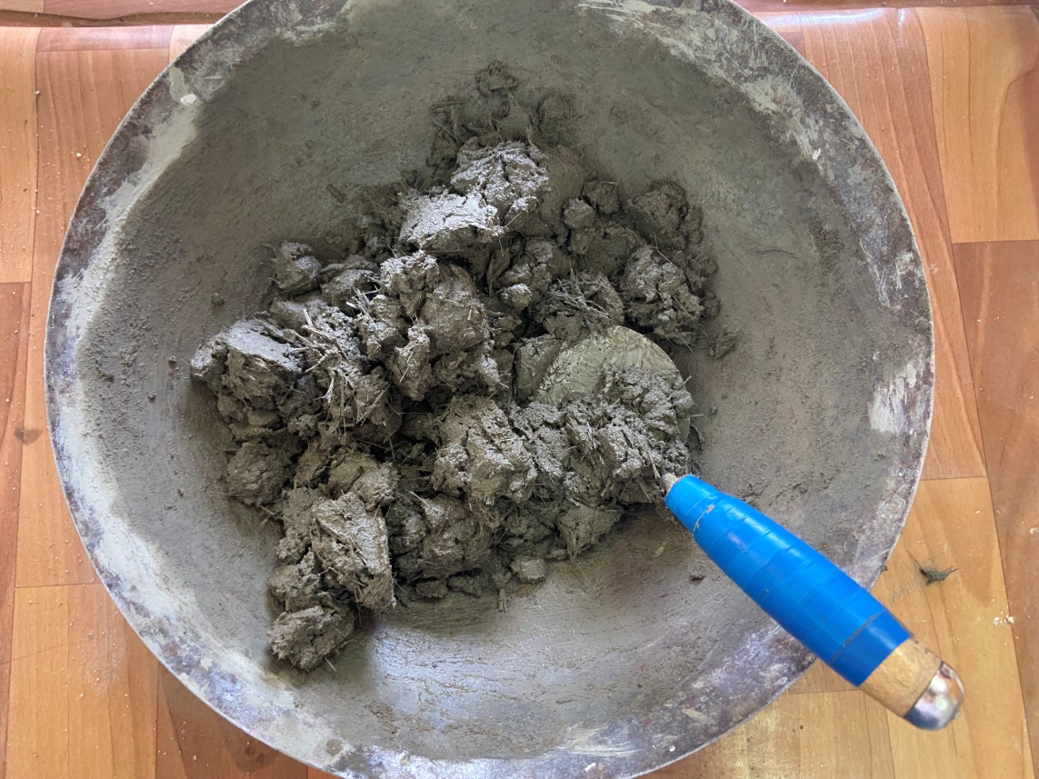 Все компоненты состава бетонной смеси в первой (пробной)серии перемешивались в сухом виде, вода вводилась постепенно в процессе перемешивания. При изготовлении образцов по указанной технологии было отмечено, что во время перемешивания в сухом виде смесь образует комки с фиброй, что приводит к неравномерному распределению стеклянного волокна в бетонной смеси (рис. 2).
