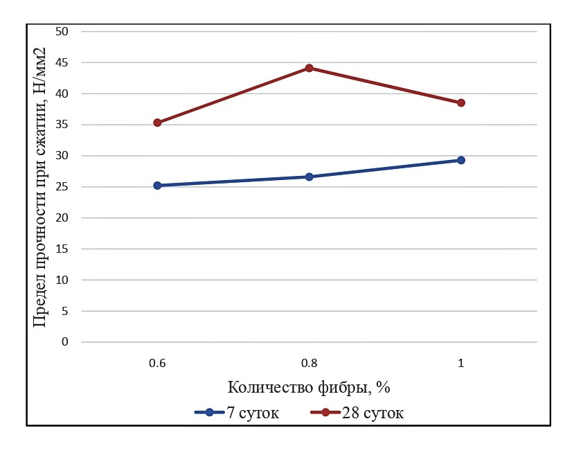 Возраст образцов, сут | Количество фибры, % | Контрольный образец | ||
