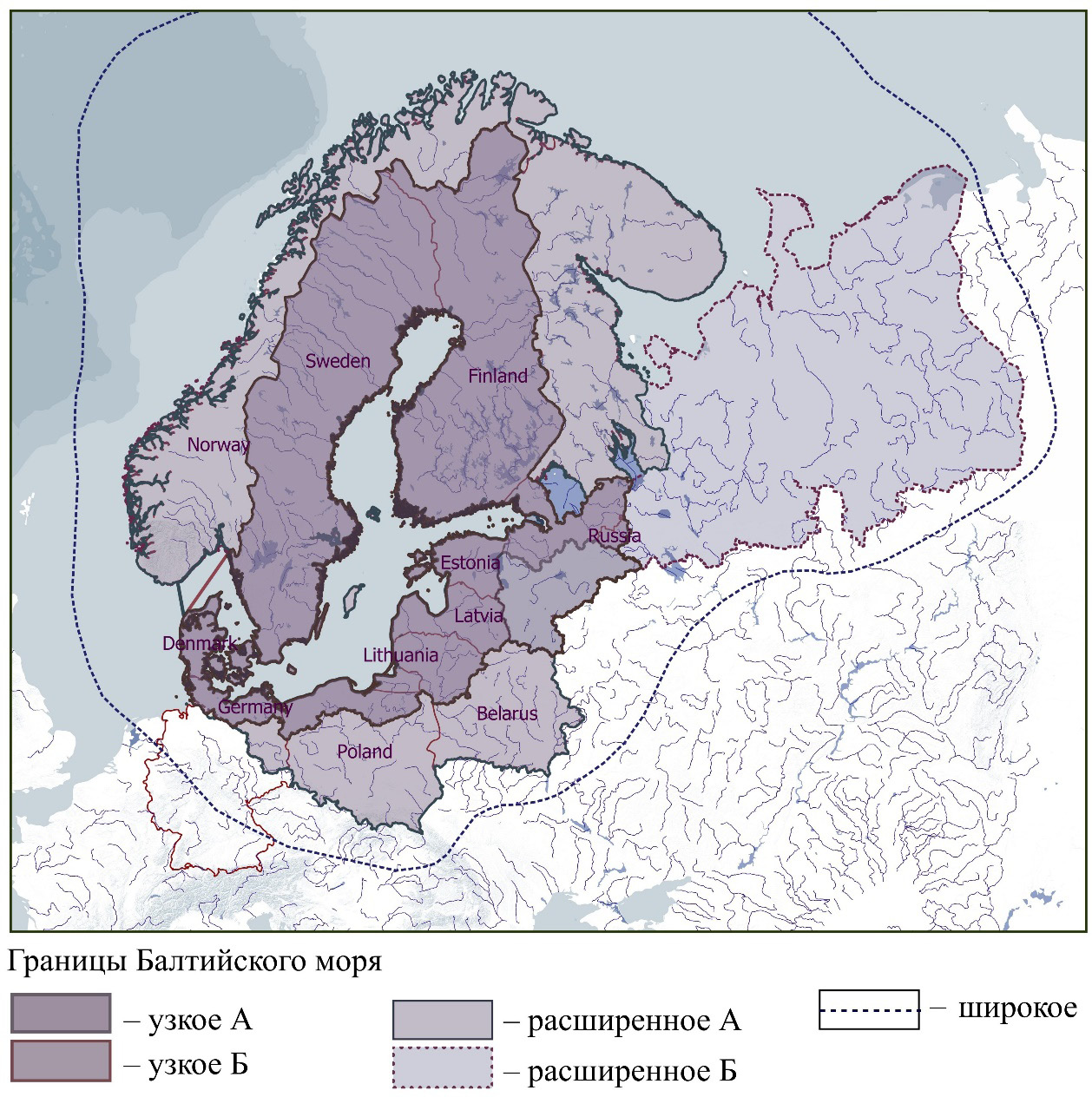 Узкое А | Швеция, Дания, Финляндия, Литва, Латвия, Эстония; земли Германии: Мекленбург-Форпоммерн, Шлезвиг-Гольштейн; воеводства Польши: Западно-Поморское, Варминьско-Мазурское, Поморское; субъекты РФ: Санкт-Петербург, Ленинградская и Калининградская области |