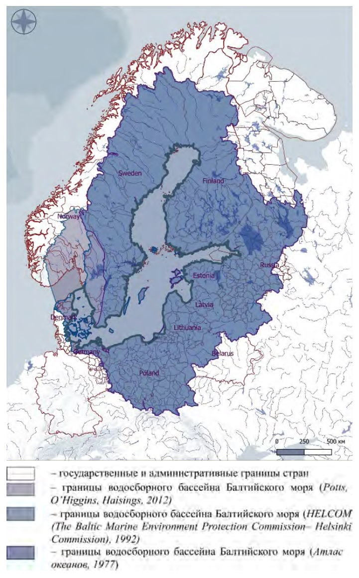 4 В рамках естественнонаучного подхода, его природно-экологической составляющей наличествует множество предложений по формированию границ Балтийского региона на основе бассейнового принципа. Эта тема достаточно проработана географией, геологией, климатологией, экологией и др. Результаты реализации природно-экологической установки различаются лишь в части очертаний западных региональных границ [17, с. 10], что обусловлено включением (или невключением) [22] в границы водосборного бассейна Балтийского моря Датских проливов, а также проливов Каттегат и Скагеррак в самых разных «начертательных» вариациях.