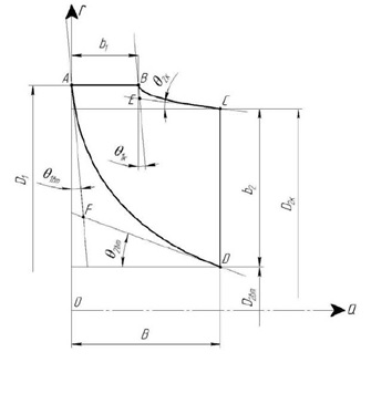 Предварительно определяются величины внутреннего и внешнего диаметров на выходе из РК.