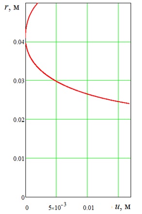 При помощи полученной кривой рассчитывается угловая координата средней линии лопасти. Определяются текущие значения координат u, которые, опираясь на значение радиуса контрольного сечения r2ср, пересчитываются в значение угловой координаты: