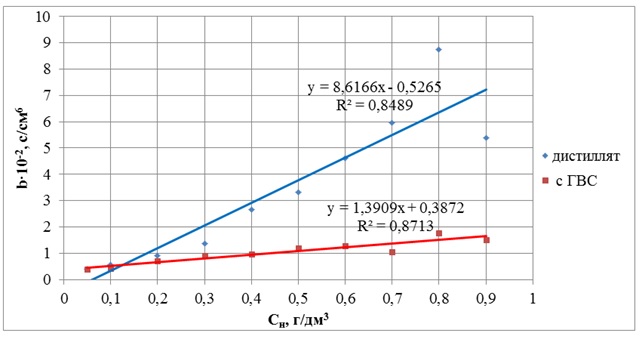 Таблица 5. Опытно-расчётные данные параметра b·10-2, с/см6, исследуемого осадка в формуле (4) для раствора с использованием воды с ГВС