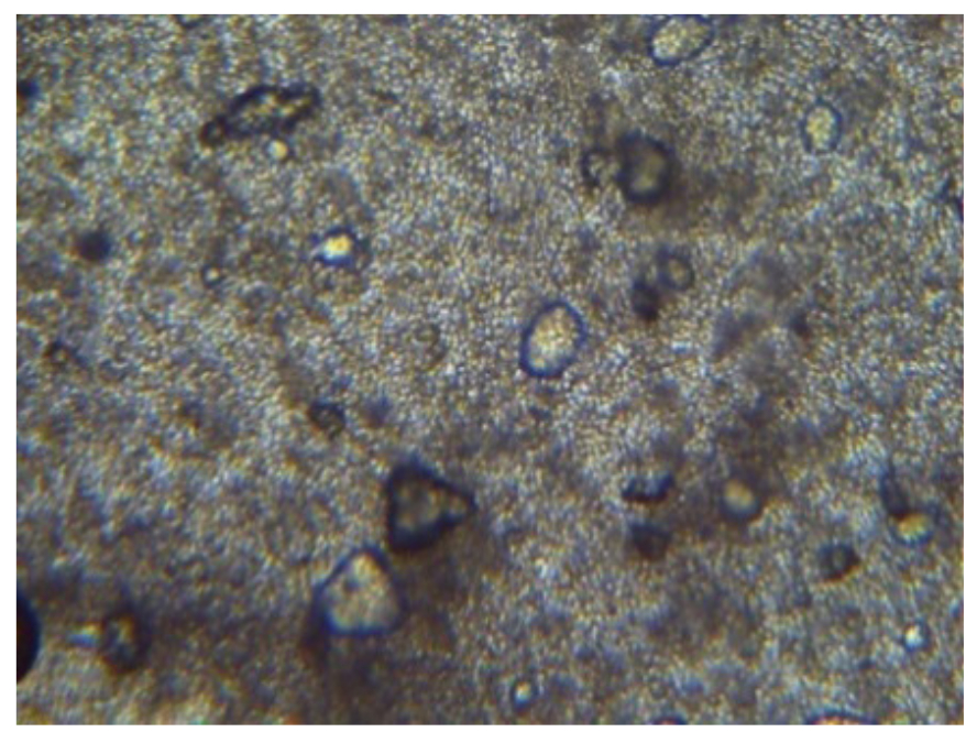 Сравнение микроскопирования полученного биоценоза (рис. 7) и пищевых дрожжей (рис. 8) демонстрирует их идентичность, что дает возможность предположить, что биопрепарат имеет в своем составе одноклеточные низшие грибы.
