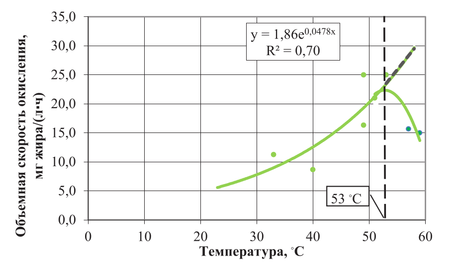 Объемная скорость окисления, V, мг/(л·ч) | 34,61 | 110,99 | 146,63 |