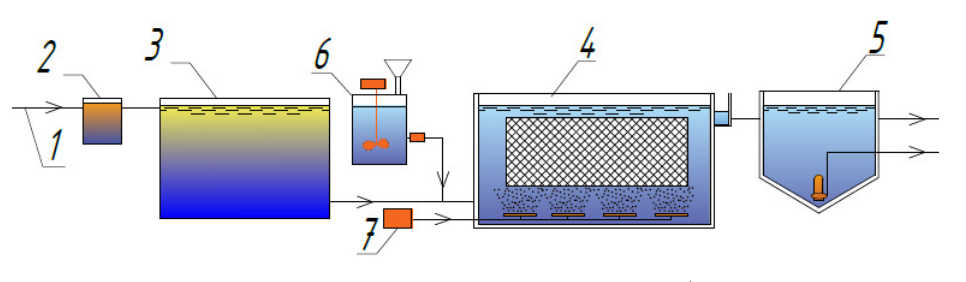 Состав исходных и очищенных сточных вод по основным загрязнениям принят в соответствии с табл. 2. Концентрация биогенных элементов в исходной сточной воде, мг/л: азот аммонийный – 7,8, азот нитратов – 2,35, фосфор фосфатов – 0,57.