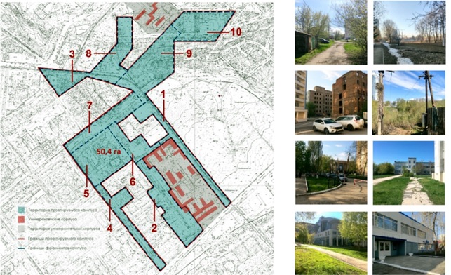 Территориально-пространственные аспекты определяют модели расположения вузов в структуре городских территорий. Можно выделить два основных типа: интегрированный кампус и сопутствующий. Первый подразумевает расположение вуза внутри города, различными планировочными способами включаясь в его среду и застройку. Вторая модель отражает расположение на пригородных территориях, за границами крупных поселений [2]. Расположение университетских комплексов — это один из факторов развития, создающих толчок для архитектурно-пространственного преобразования в том или ином направлении. Вузы в настоящее время стремятся стать центрами инновационного развития регионов и имеют для этого все основания, начиная с образовательной, кадровой базы и заканчивая территориально-пространственными ресурсами. Перечисленные взаимодействия ведут к интеграции данного потенциала в инновационно-исследовательские кластеры. Для современных российских университетов − это основной вектор развития на современном этапе.