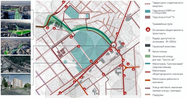 Таким образом, система территориально-пространственного размещения самарских вузов нуждается в развитии таких ее моделей, которые позволят эффективно использовать имеющиеся, уже сформированные урбанистические, инфраструктурные, образовательные, антропологические ресурсы. Модели городских распределенных студенческих кампусов и кварталов, включённых в центральные районы города, позволяют наладить эффективный обмен ресурсами между городом и университетом, между горожанами и студентами. Предложенный ниже проект студенческого квартала выполнен на основе такой модели.