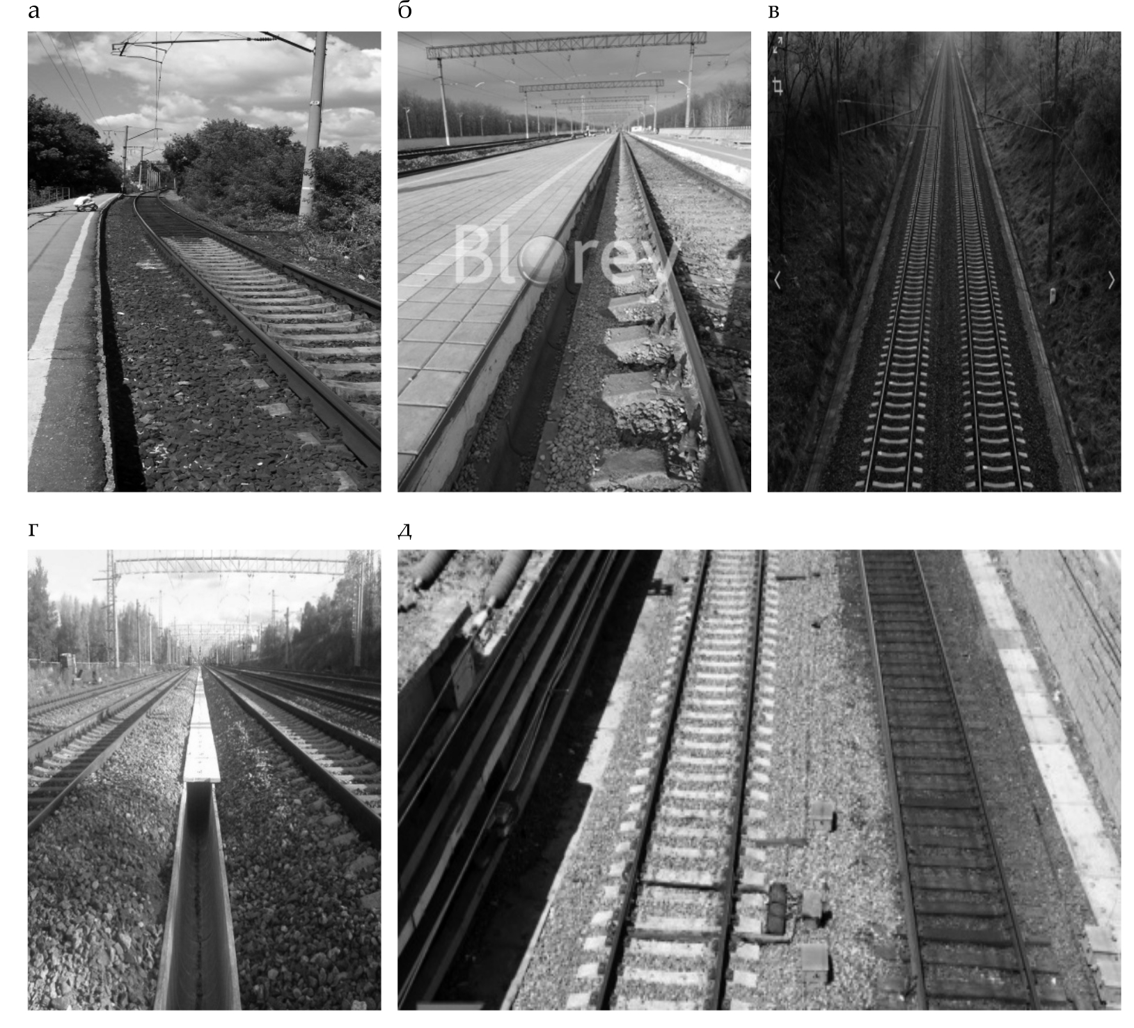 Рис. 6. Расположение лотков на железнодорожном пути: а, б – Самара; в, г – Самарская обл.; д – промплощадка г. Самара
