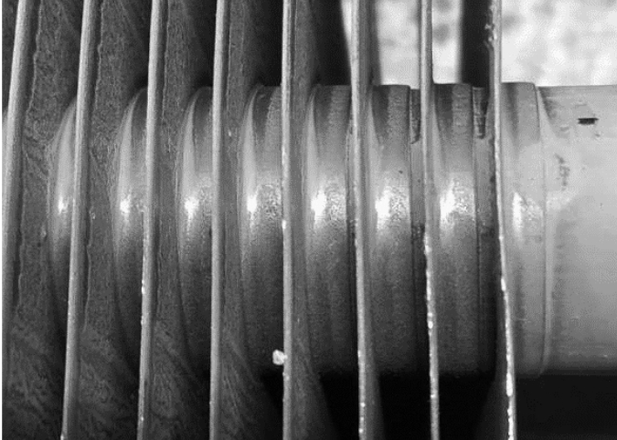 В результате проведённого исследования выявлены недостатки, возникающие при изготовлении и фиксации пластин на трубе: большой радиус перехода от плоскости к кромке, большие зазоры и неравномерная, с разрывами посадка пластин на трубу. Рекомендуется изменить форму пластин в соответствии с размерами на рис. 1.