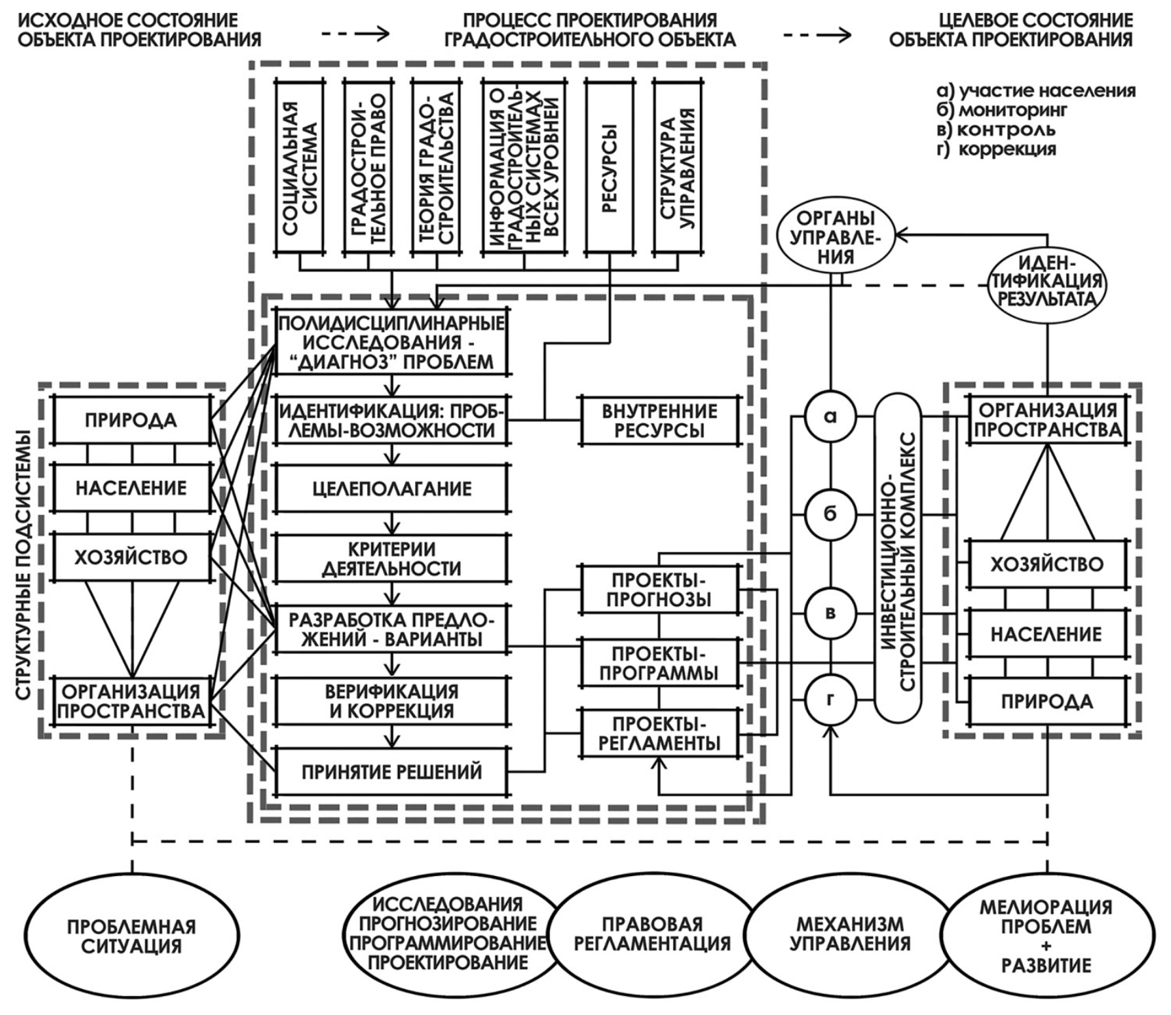 Рис. 8. Системная модель градостроительного проектирования по Смоляру И.М., 1995 г. [10, с. 64–65].