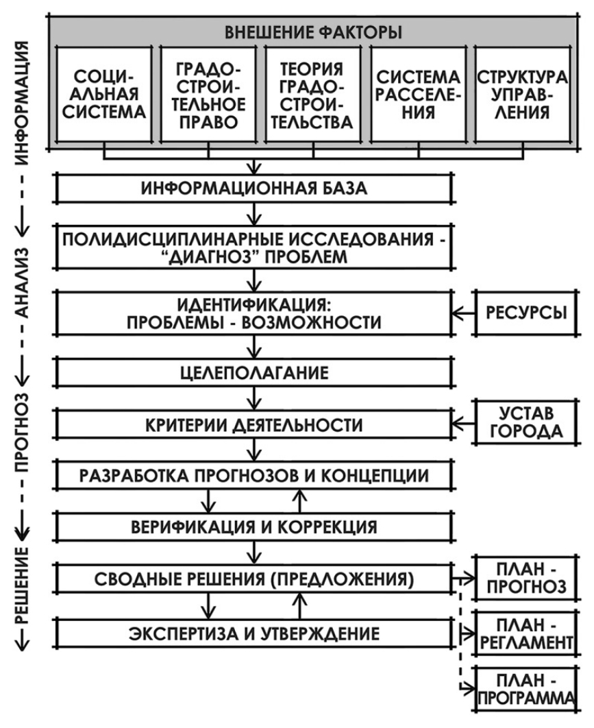 Рис 9. Операционная модель разработки генерального плана города по Смоляру И.М., 1995 г. [10, с. 69]