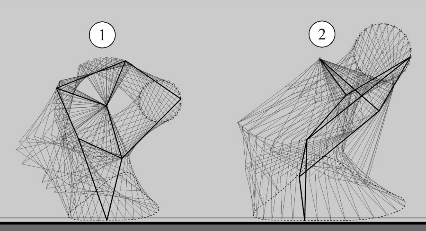 На рис. 1 показаны для сравнения две схемы. Под номером 1 – схема Тео Янсена; под номером 2 – схема, разработанная авторами статьи.