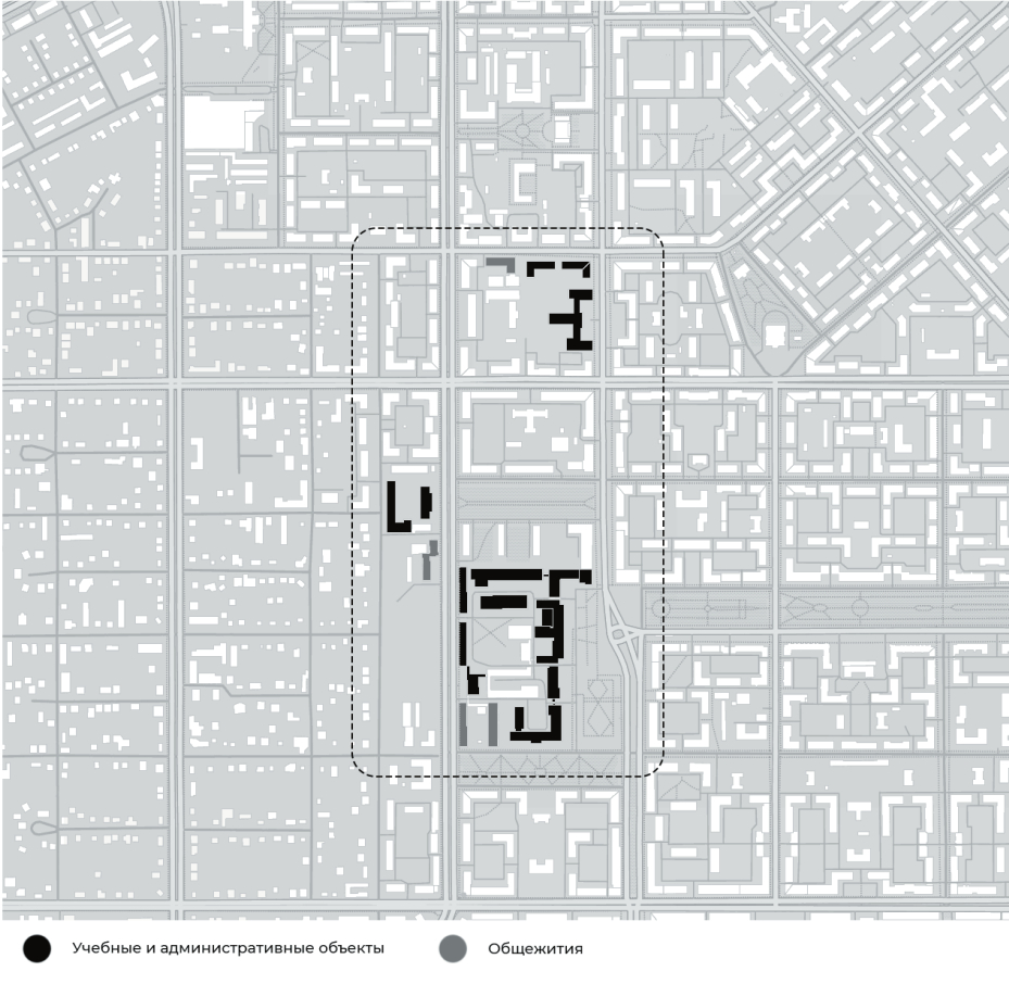 Рис. 3. Схема кампуса Южно-Уральского государственного университета (ЮУрГУ), г. Челябинск. Компактный тип