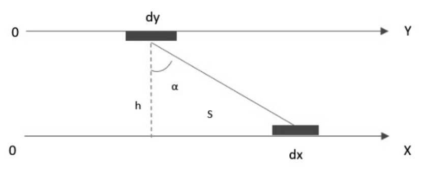 Выражение dFdx-dy – одинаковое для «левой» и «правой» части излучателя, поскольку в соотношении, описывающем угловой коэффициент, есть компонент (x2 + y2), показатель которого позволяет сделать вывод о том, что совершенно не имеет значение, какой из параметров больше или меньше «х» или «у».