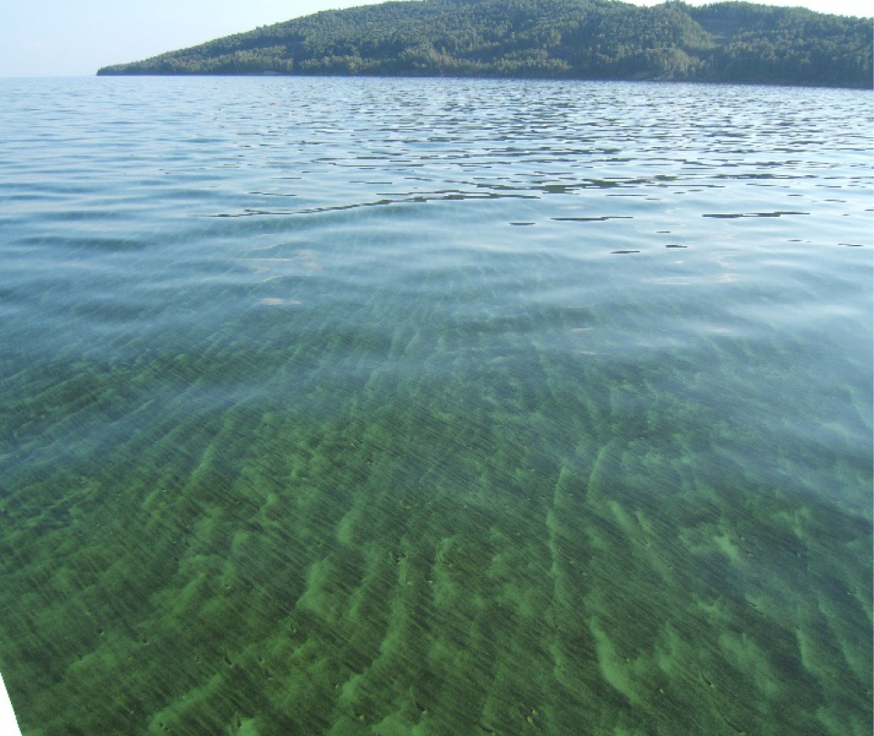 Сине-зеленые водоросли – одноклеточные, нитчатые и колониальные микроорганизмы. На поверхности водохранилища они способны к формированию толстой пленки (рис.1). Бульон из водорослей производит неприятное впечатление (рис.2). Жизненный цикл у одноклеточных форм при оптимальных условиях роста составляет 6-12 часов. Диаметр клеток варьирует от 0,5 до 100 мкм. Некоторые виды водорослей, в частности Микроцистис, являются токсичными. Микроцистис – это главный участник «цветения» воды, вызывающий резкое снижение растворенного кислорода и массовые заморы рыбы.
