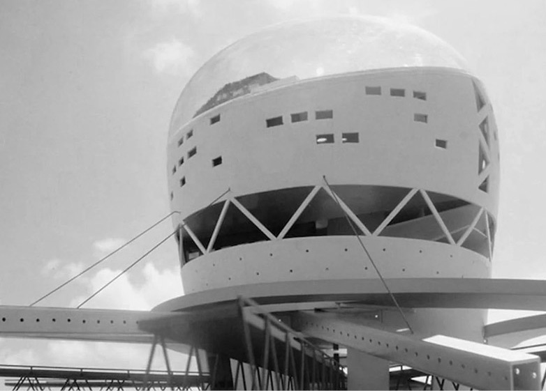 Так лифт, мигрируя из небоскреба как средство организации непрерывного пространства, превращается здесь в самодостаточную пространственную единицу. Три различных уровня представлены тремя слоями. Так же как в небоскребе интерьеры этажей не связаны между собой, так и этажи дома имеют разную функцию и архитектуру. Контраст среднего уровня, представленного стеклянным объемом, устраняющим барьеры между интерьером и экстерьером, с закрытым уровнем спален, в котором только круглые проемы ловят солнечные лучи, заставляет вспомнить о парящих плоскостях супрематизма Хидекеля. При этом нижний уровень, в котором находятся кухня и служебные помещения, выглядит как дадаистский рисунок. Невероятная плотность разнообразных перспектив, сконцентрированных в небольшом объеме, превращает жилой дом в кинофабрику впечатлений. Вертикальный променад здесь представляет собой и ответ Ле Корбюзье, и одновременно прославляет вертикальный разрез как главную концептуальную диаграмму.