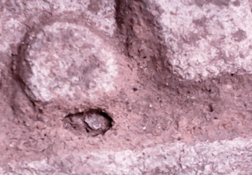 Рис. 7. Фундамент из глыб известняка с небольшой примесью битого кирпича (второй тип)
