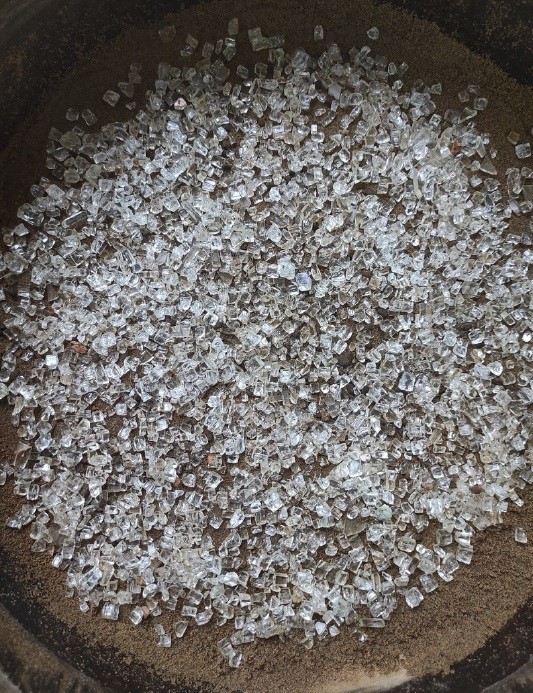 Рис. 2. Процесс укладки стеклянной крошки на модельный грунт