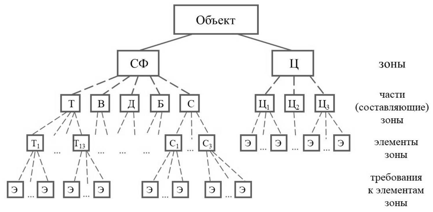 Для решения поставленной задачи предлагается следующая многоуровневая схема зон и составляющих исследуемого объекта [21] (рис. 1).