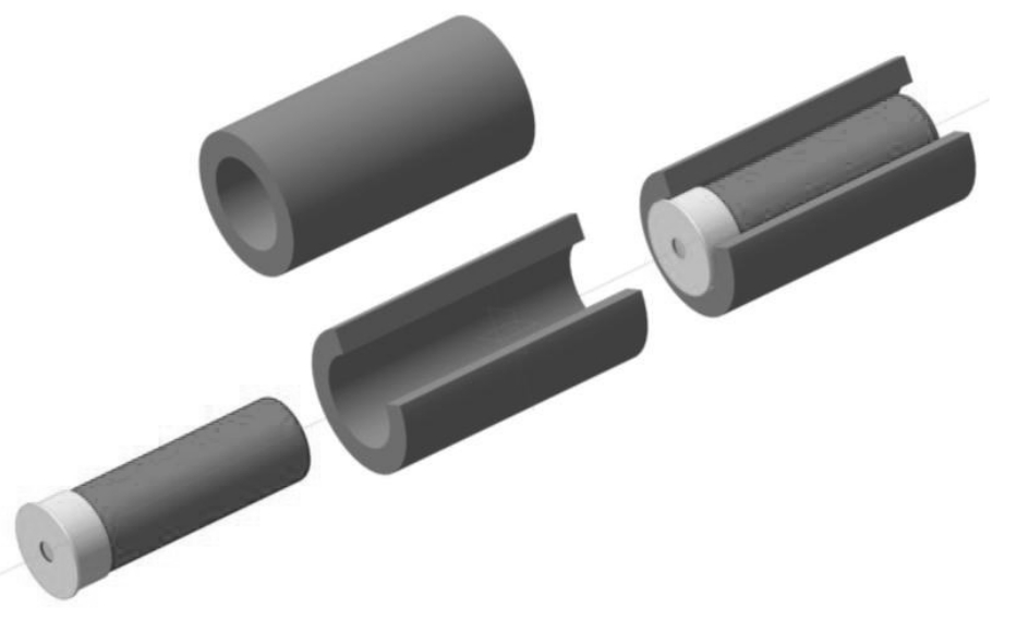 Возможно применение вкладыша (рис. 5) из отрезка слесарной стальной трубы подходящего диаметра. Можно использовать отрезок по длине патрона, 1/2 ‘стальной трубы, подходящей к калибру патрона. Сработавший патрон непосредственно в изделии может «прихватить» (приварить) к стенкам из-за ударного расширения при срабатывании вследствие прочной адгезии и слипания поверхностей. Вкладыш выступает в роли «посредника» патронника и казённика как в обычном оружии, удерживающего гильзу от разрыва и разлёта. Гильза сработавшего в воздухе патрона, ничем не ограничиваемого, разрушится по всем направлениям. Вкладыш концентрирует, точнее и полнее ориентирует выброс вспышки и пули точно по оси, снижая боковой разброс и потерю энергии, точно так же как обычный ствол оружия сдерживает патрон, разгоняя пулю и ориентируя на мишень. Раздутия вкладыша не ожидается, как и особой «прихватки», при значительном отверстии калибра (слабый порох).