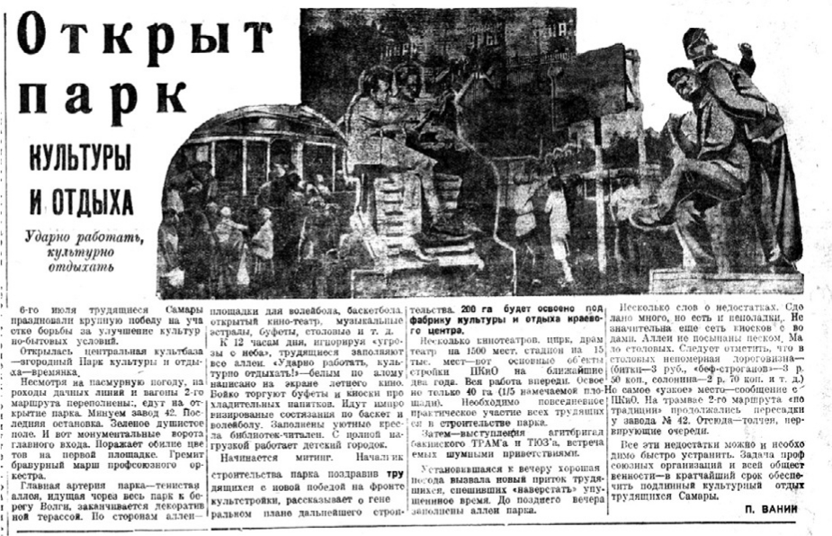Archival materials about the opening of Out of town park in the 30s in Samara