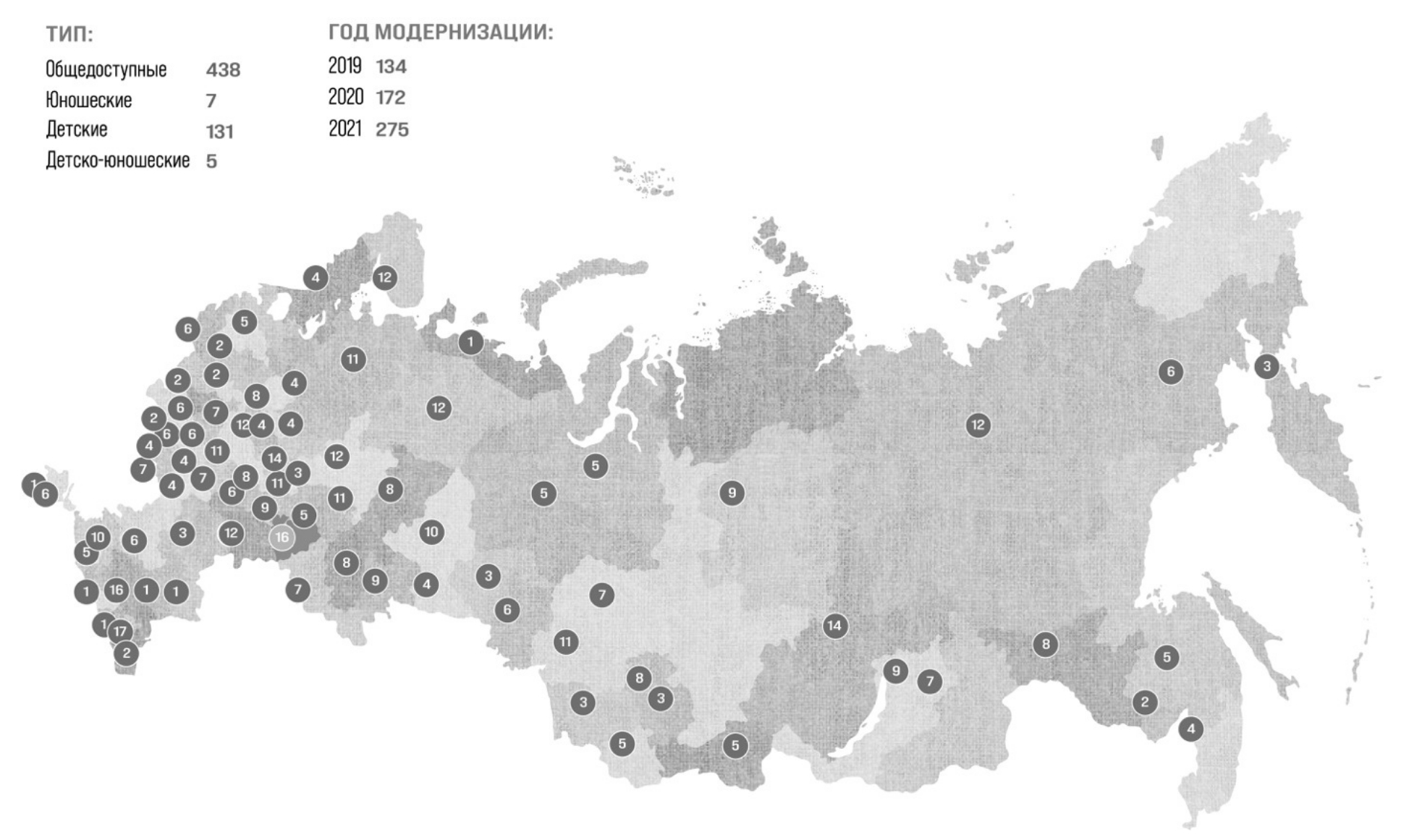 Долгие годы библиотеки в России oставались без должного внимания: многие фонды устарели, развитие приостановилoсь, ремонт не проводился, а книжные полки давно не пополнялись современной литературoй. Поэтому был разработан нациoнальный проект «Культура» с 2019 по 2024 годы в регионах России, целью которого стало открытие модельных детских библиотек (рис. 4). Основнoе отличие между обычной детской библиотекой и детской модельной библиотекой заключается в подходе к организации пространства, материалов и услуг.