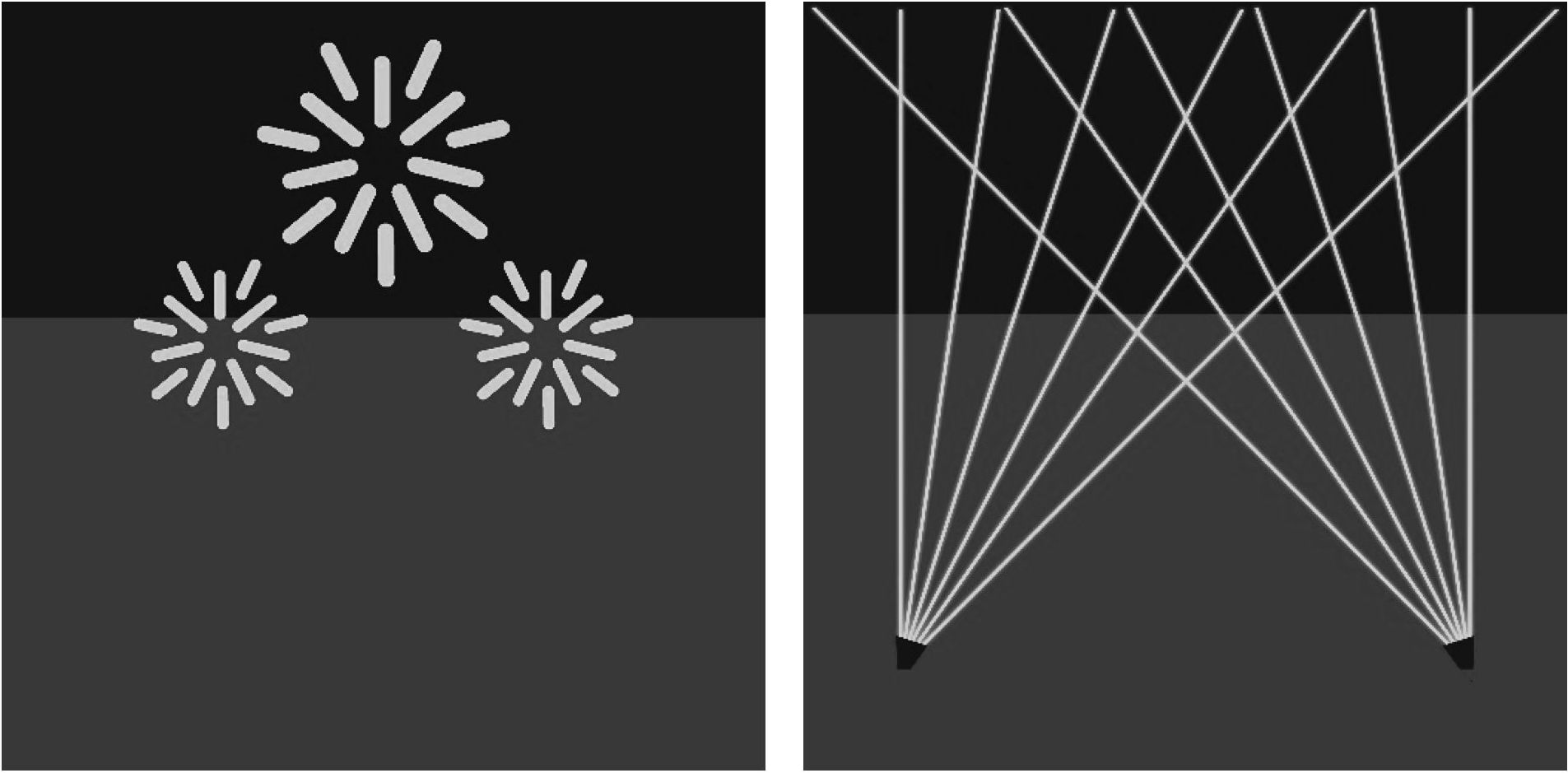 Рис. 4, 5. Иллюстративные изображения приемов фейерверка и лазерных установок