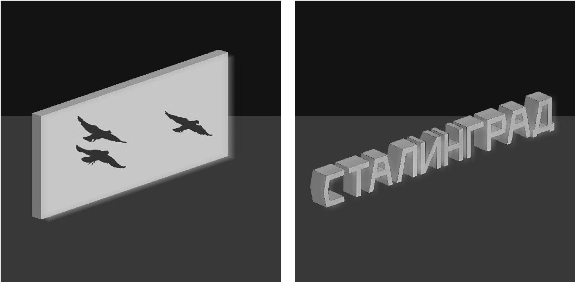 Аллея Героев представляла собой длинную зону-галерею – на ней были установлены световые стенды с информацией о ходе сражения, рассказами очевидцев, письмами с фронта, картинами, посвященными битве, и пр. Были задействованы также фасады окружающих аллею зданий и даже скульптуры (Стелла Защитникам Красного Царицына) – на них были воспроизведены изображения летящих аистов.