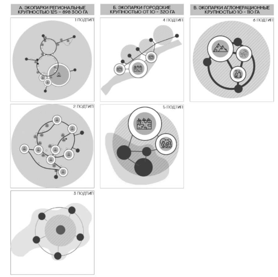 Рис. 2. Теоретические модели экопарков различных подтипов (разработка авторов)