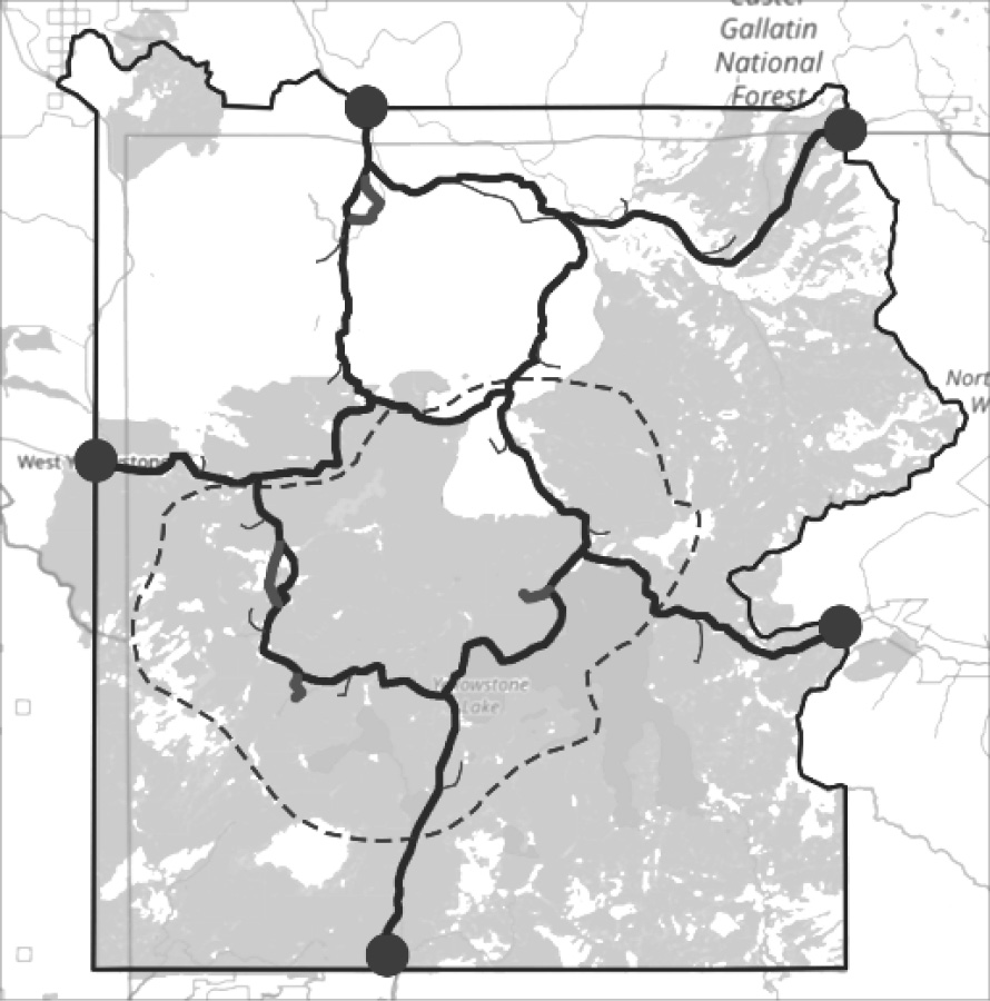 Рис. 4. Схема ландшафтно-планировочной организации Йеллоустонского национального парка, США [20]