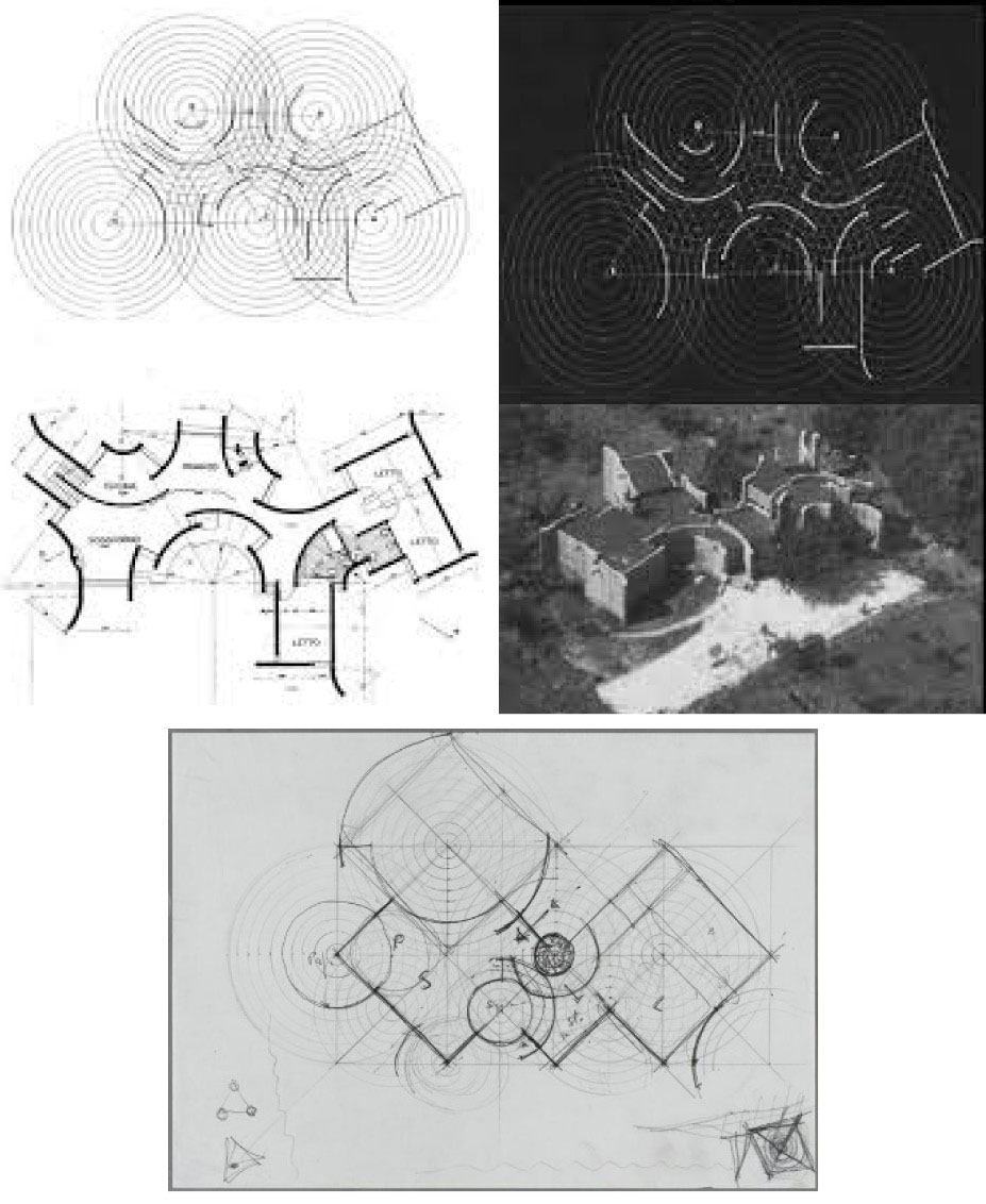 Таким образом, Кристиан Норберг-Шульц рассматривает архитектурные поля, централизованные поля, динамические зоны, используемые для движения, в которые вторгаются поля. В современной архитектуре он рассматривает «открытые» поля как протяженное, перетекающее пространство без центров. В качестве яркой демонстрации актуальной концепции поля в архитектуре он, так же как и Р. Арнхейм, приводит проекты Паоло Портогези (рис. 3) и проекты, выполненные им совместно с Валеррио Джильотти, например Каса Андрес (рис. 4). В этом здании его пространственная протяженность организована с помощью пяти центров (фокусов), которые определяют серию концентрических окружностей. С их помощью пространство становится как бы динамическим потоком. Другой проект – вилла Папаниче в Риме (рис. 5). Земля, на которой должен был разместиться дом, была заселена древними и величественными деревьями. Портогези не только решает не сносить их, но и укрепляет. Дизайн дома, по сути, построен вокруг них так, что окна смотрят на стволы этих деревьев и повседневная жизнь внутри дома создает ощущение жизни в лесу. Модулем здания также является вертикальная цилиндрическая форма, перекликающаяся со стволом дерева.