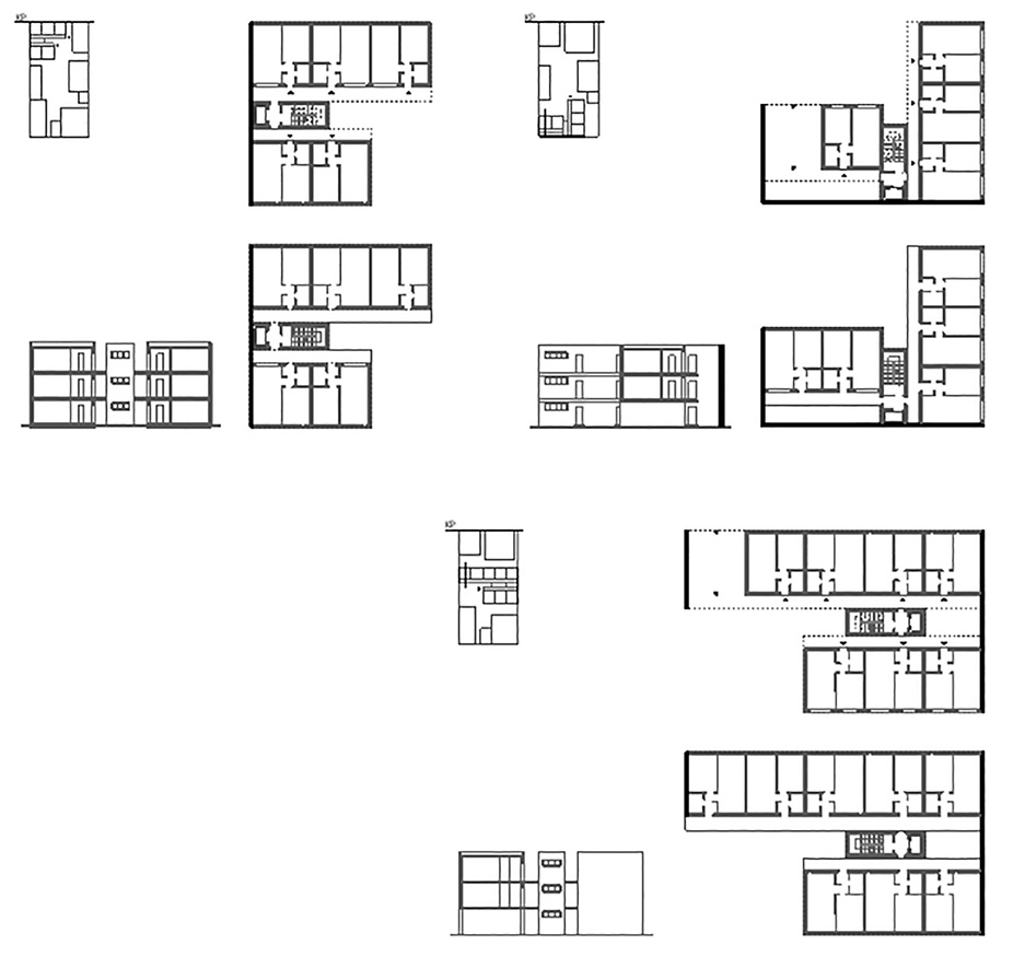 Fig. 4. Gallery house. Options for location in the courtyard structure