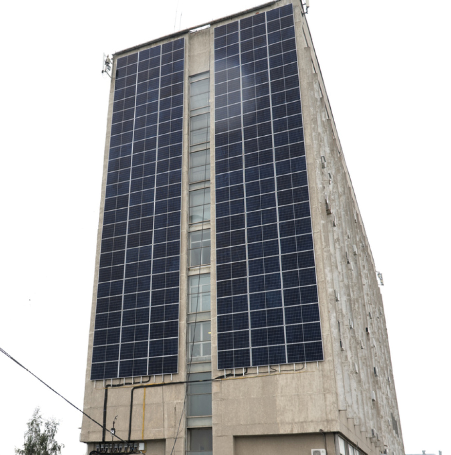 Fig. 1. Building with curtain wall facade made of photovoltaic panels [7]