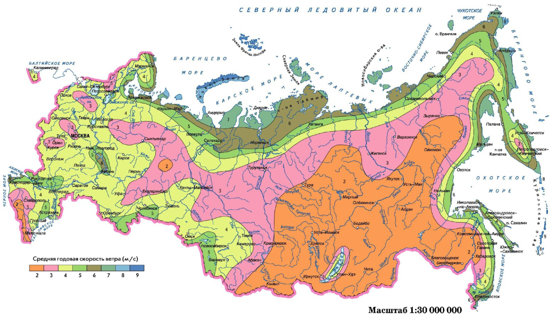 Fig. 7. Wind map of Russia [14]