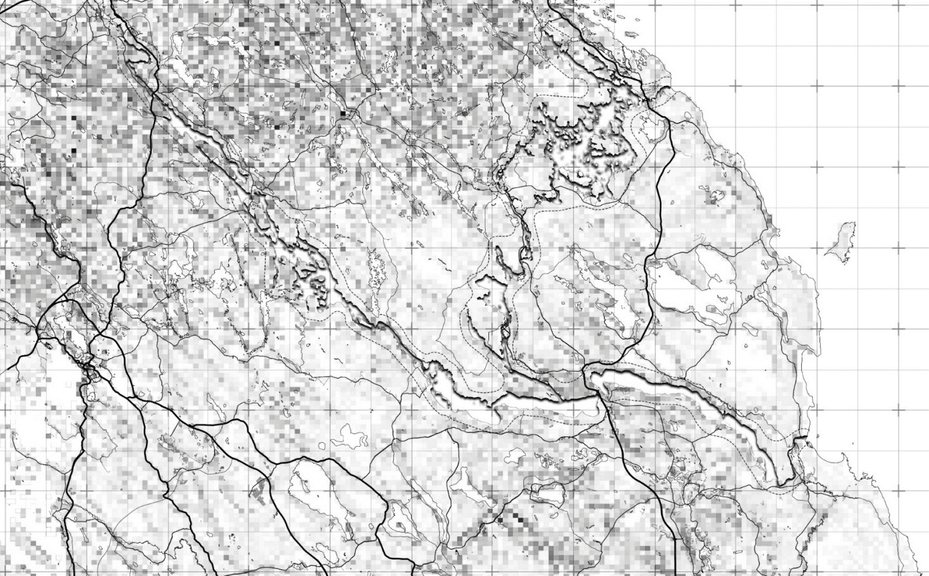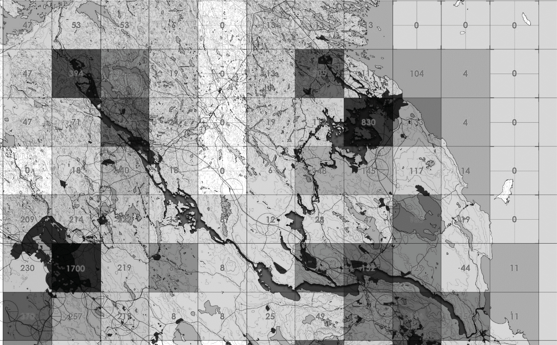 При построении планограммы размер ячейки в планограмме анализа плотности должен быть кратен размеру ячейки в планограмме благоприятных ландшафтных условий.