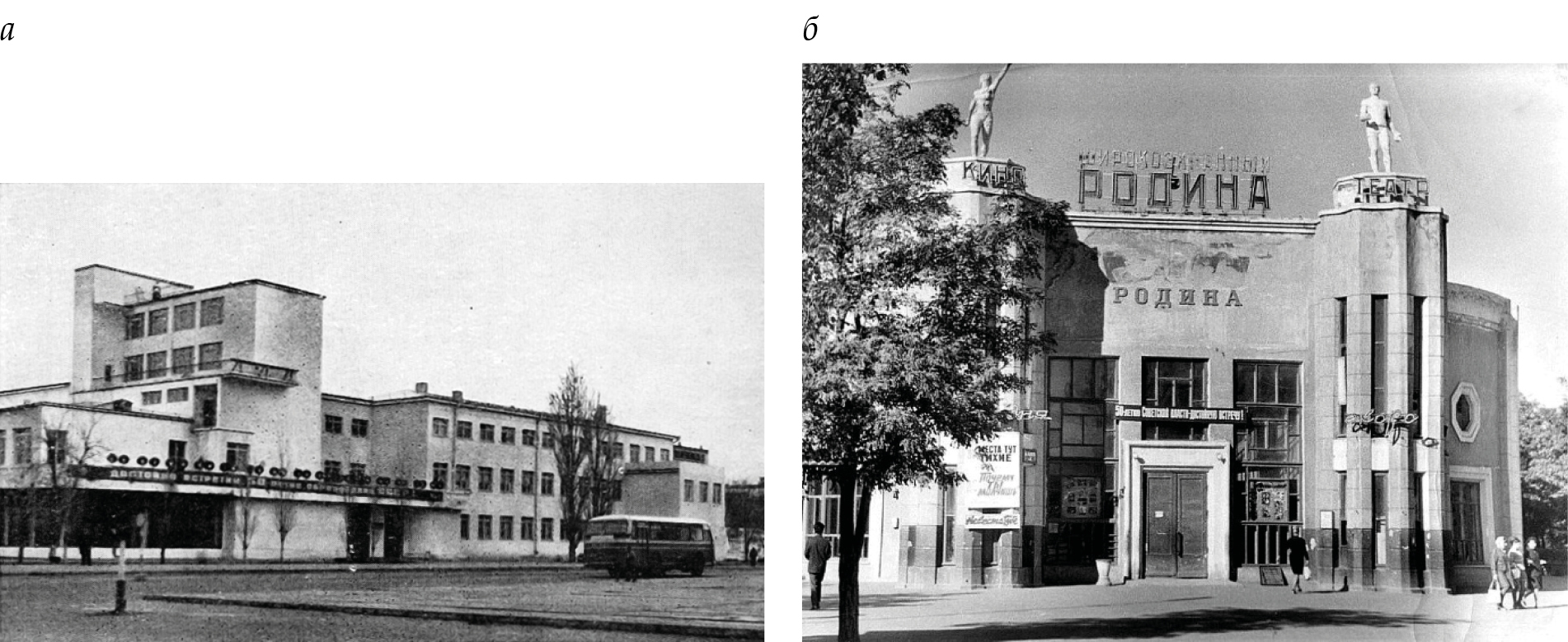 а – Дом Советов; б ‒кинотеатр «Родина»